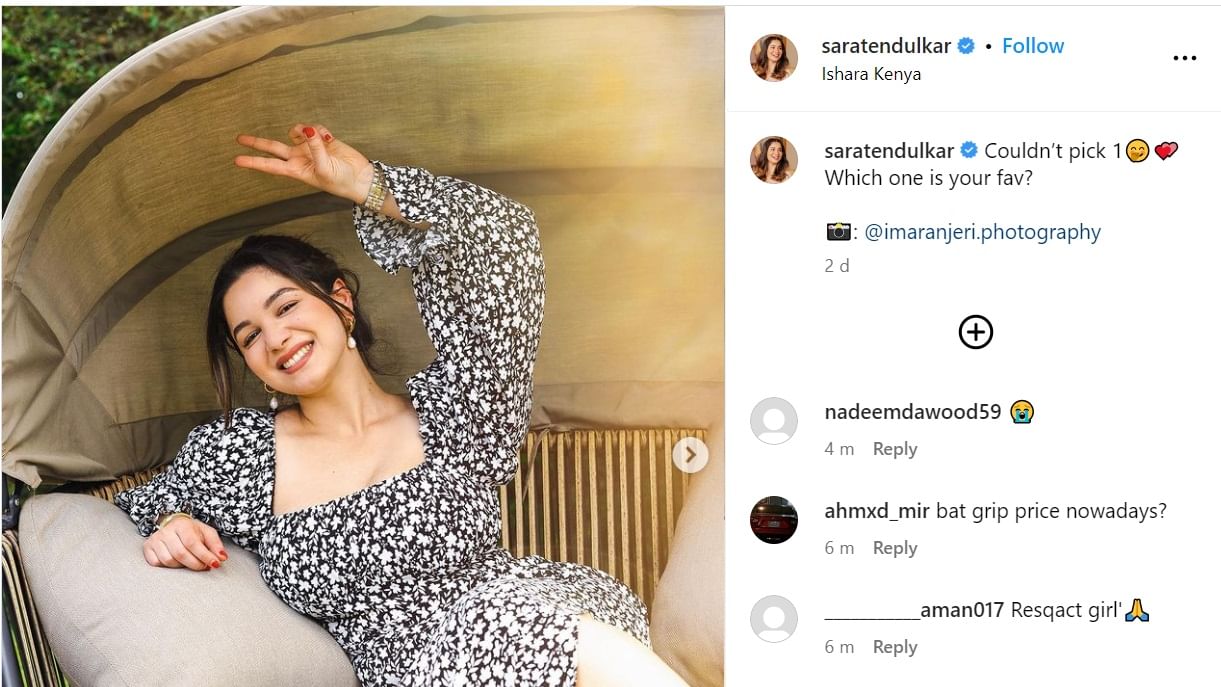 वर्ल्ड टेस्ट चॅम्पियनशीप दरम्यान सारा लंडनमध्ये उपस्थित होती. लंडनहून सारा तिच्या कुटुंबासोबत केनिया याठिकाणी पोहोचली आहे.. साराने तिच्या पिकनिकचे फोटो देखील सोशल मीडियावर पोस्ट केले आहेत. फोटो पोस्ट करत साराने कॅप्शनमध्ये, ‘मी कोणता एक निवडू शकली नाही…’ असं लिहिलं आहे. सध्या साराचे फोटो सोशल मीडियावर तुफान व्हायरल होत आहेत.