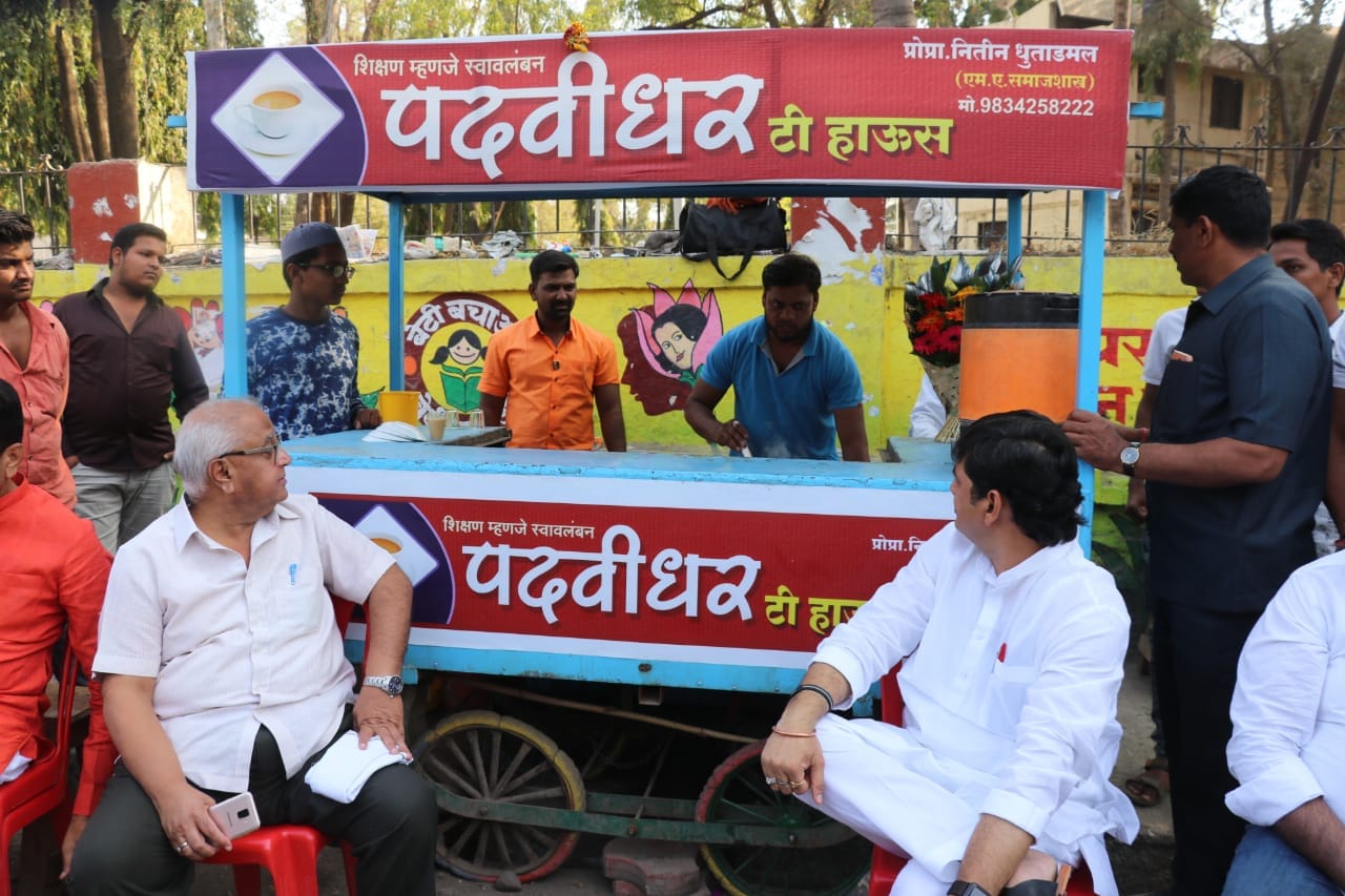 नितीन धुताडमल या युवकाने समाजशास्त्र विषयात पदव्युत्तर शिक्षण घेतले आहे. पीएसआय परीक्षेत कमी मार्क मिळाल्याने थोडक्यात पद हुकले. दुसरीकडे कुठेही नोकरी मिळत नाही म्हणून हतबल होऊन त्याने बीडच्या डॉ. बाबासाहेब आंबेडकर सामाजिक न्याय भवनासमोर चहाची टपरी टाकली. यावरच त्याचा उदरनिर्वाह चालतो. त्याचा या ‘पदवीधर’ टी स्टॉलला राज्याचे विरोधी पक्षनेते धनंजय मुंडे यांनी भेट दिली.