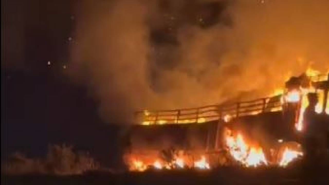 Pune Solapur highway truck burning on highway : पुणे-सोलापूर महामार्गावर ट्रकला आग लागली. आगीनंतर हा ट्रक तीन तास जळत होता. महामार्गावर रात्री २ वाजता लागलेल्या या आगीमुळे वाहतूक ठप्प झाली. दुसऱ्या मार्गावरुन वाहतूक वळवण्यात आली.