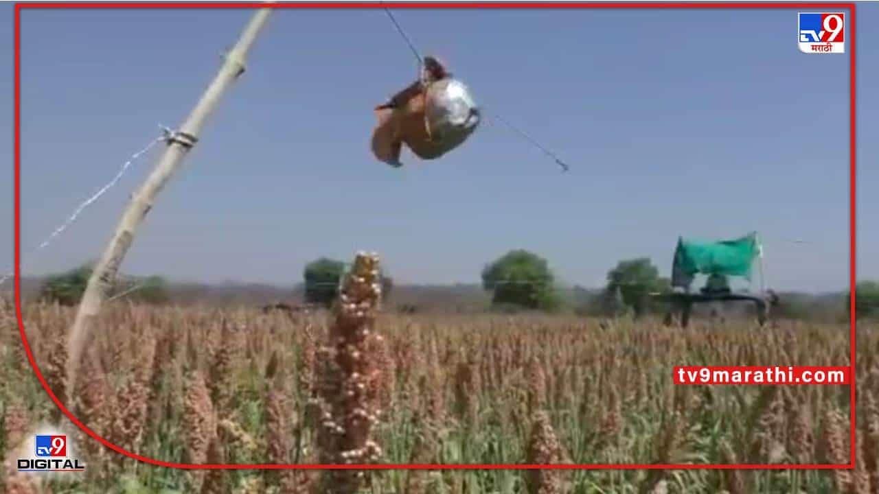 ढोणी गावचे गजानन शेळके यांची हायब्रीड आणि ज्वारी हंगामाच्या अंतिम टप्प्यात आहे. त्यामुळे पिकांचे संरक्षण करण्यासाठी त्यांनी चक्क घरातील पाण्याच्या हंड्याचा वापर केला आहे. दोन एकरातील क्षेत्रामध्ये बांबूच्या सहायाने हांडे बांधले आहेत. या हंड्यामध्ये बारिक दगड,गोटे टाकून ते कापडाच्या सहाय्याने बंद केले आहे. एका एकरात किमान 4 ते 5 ठिकाणी असे करुन सर्व हांड्याचे दोर स्वत:कडे ठेऊन ते सातत्याने हालवत आहेत. त्यामुळे हांड्यातील दगड, गोटे यांचा गोंगाट होऊन पक्षीच काय जनावरे देखील पिकाकडे फरकत नाही. शिवाय एकाच जागेवरुन ते पिकाचे संरक्षण करु शकत आहेत. याकरिता काही खर्च नाही शिवाय एका ठिकाणी सावलीत बसून ते पिकांचे संरक्षण करु शकतात.