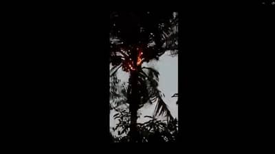 नाशिक : सिन्नर (Sinner) तालुक्यातील कारवाडी (karwadi) वीज पडून नारळाचे झाड (coconut tree) पेटल्याची घटना घडली असून तालुक्याच्या पूर्व भागात विजांच्या कडकडाटासह रिमझिम पावसात सुरू झाली होती. दरम्यान शहा-कारवाडी रोडलगत राहणाऱ्या संतोष सोपानराव जाधव यांच्या घराजवळ असणाऱ्या नारळाच्या झाडावर वीज कोसळून झाडाच्या वरच्या भागाने पेट घेतला. वाऱ्यामुळे आगीच्या ठिणग्या उडू लागल्या. स्थानिक तरुणांनी तात्काळ औषध फवारणीचे प्रेशर ब्लोअरच्या साह्ययाने आग विझविली.