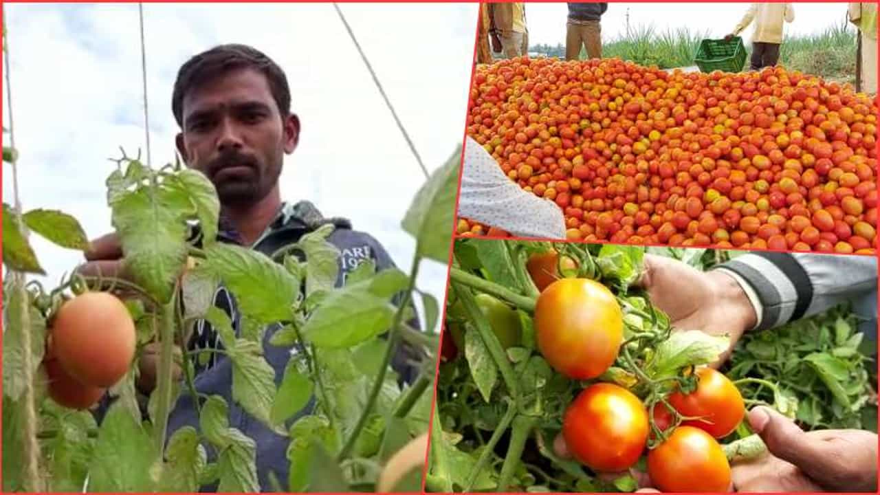 ( Bhagwat Raut earn six lakh rupees from Tomato farming at Saradewadi of Indapur)
