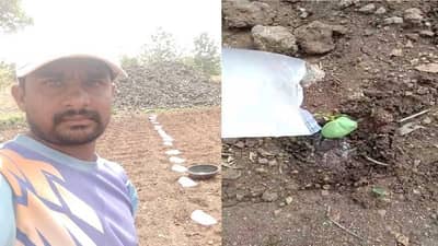 (Dhule Farmer Vinesh Pavara supply water by plastic bag due to lack of rain)
