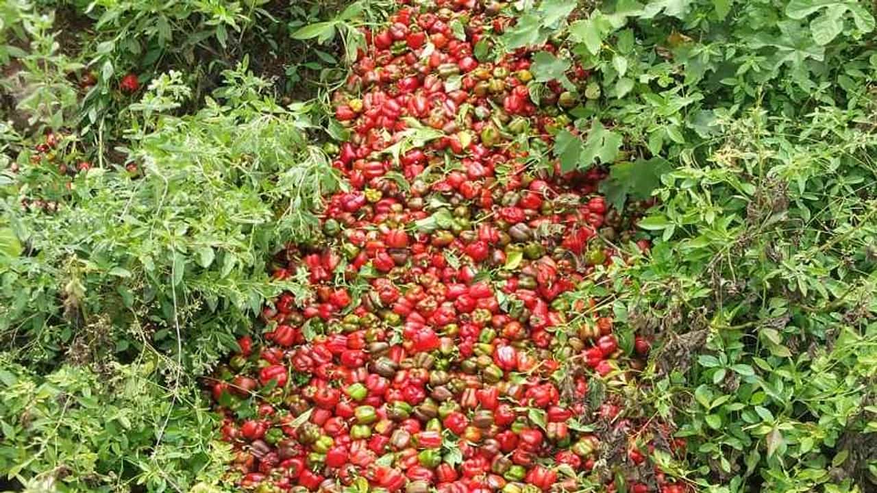 पावसाने (Rain) केवळ खरिप हंगामातील पिकाचेच नुकसान केले नाही तर भाजीपाला, फळबागा (vegetable) यांचेही मोठे नुकसान झाले आहे. पारंपारिक शेती पध्दतीला फाटा देत शेतकरी नवनवीन प्रयोग करण्याचा प्रयत्न करतात पण निसर्गाची अवकृपा आणि बाजार भावाचे गणित शेतकऱ्यांना जुळत नसल्याने नुकसानच पदरी पडत आहे. यापुरर्वी नाशिक, उस्मानाबाद जिल्ह्यातील भाजीपाल्याच्या दराचे वास्तव समोर आले होते तर आता बीड जिल्ह्यातील आष्टी तालुक्यातील. पावसाने सिमला मिरचीचे नुकसान झाले असून 25 टन मिरची ही बांधावर फेकून देण्याची नामुष्की शेतकऱ्यावर ओढावलेली आहे.
