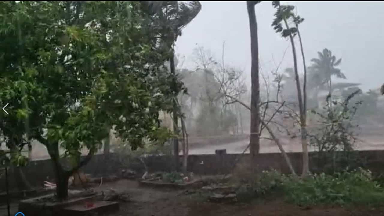 झालेल्या पावसामुळे परिसरात चिकल दिसत आहे. नारळाच्या झाडांबरोबर इतर झाडं सुध्दा वाऱ्यांच्या देशाने डुलत आहेत. रस्त्यात पाणी सुध्दा अनेक ठिकाणी साचलं होतं. त्याचबरोबर पडलेल्या पावसामुळे रस्त्यात अनेकजण मोटारसायकवरून पडले सुध्दा आहेत.