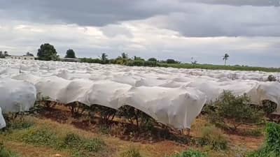 सांगोला तालुक्यातील अनेक शेतकऱ्यांनी डाळिंबावर कापडी अच्छादन टाकून डाळिंब बागांचे संरक्षण केले आहे. तिथले काही फोटो सध्या सोशल मीडियावर अधिक व्हायरल झाले आहेत. शेतकरी पावसाची वाट पाहत असून समाधानकारक पाऊस न झाल्यास त्याचा फळबागांवर चांगलाचं परिणाम दिसणार आहे.