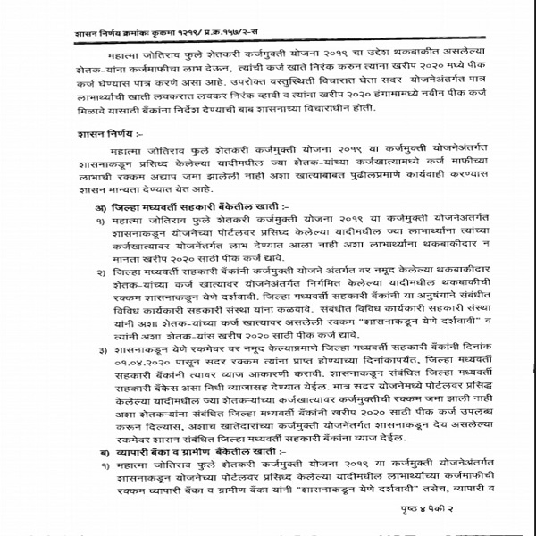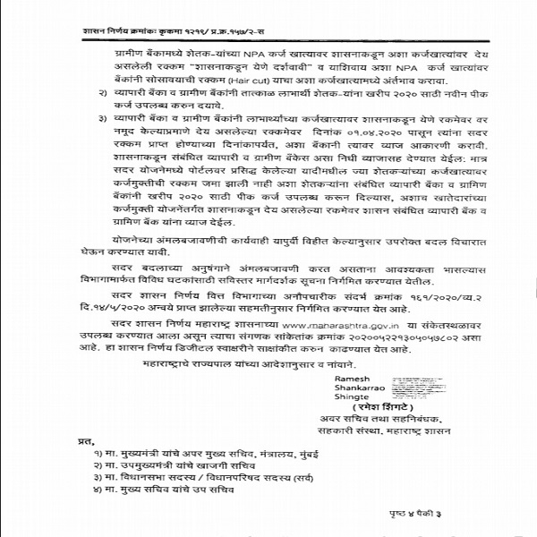 (Thackeray govt GR about crop loan)