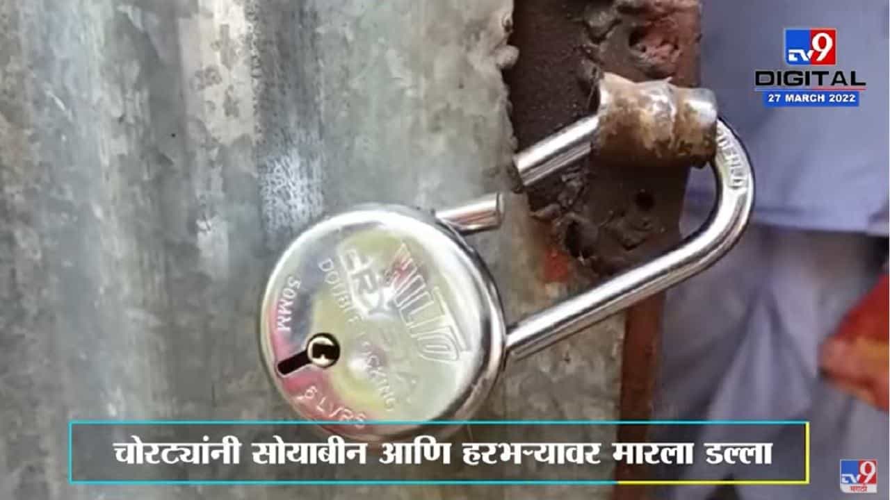 अवकाळी आणि खरिपातील अतिवृष्टीमुळे सोयाबीन उत्पादनात मोठी घट झाली आहे. त्यामुळे दर वाढतील अशी अपेक्षा शेतकऱ्यांना असल्याने गेल्या पाच महिन्यापासून शेतकऱ्यांनी सोयाबीनची साठवणूक केली होती. शेतकऱ्यांचा अंदाज खरा ठरला आणि 6 हजारावरील सोयाबीन आता 7 हजार 300 वर पोहचले आहे. माधव पावडे यांनी शेतामध्येच सोयाबीन आणि हरभऱ्याची साठवणूक केली होती. आता दरवाढ झाल्याने सोयाबीन आणि हरभऱ्याची ते विक्री करणार तेवढ्यात चोरट्यांनीच या शेतीमालावर डल्ला मारला आहे. शुक्रवारी संध्याकाळी ही घटना घडली आहे.