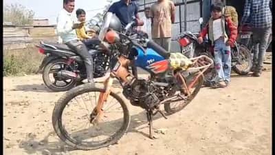 नांदेडच्या हिमायतनगर तालुक्यातील सोनारी फाटा येथील उमेश महाजन यांनी जुगाड करून आपल्या मुलासाठी मोटारसायकल बनवली आहे. उमेश महाजन हे मागील काही वर्षापासून हिमायतनगरमध्ये मोटरसायकल दुरुस्तीचे काम करतात.