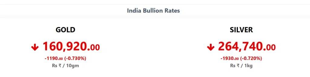 बुलियन वेबसाइटनुसार, 24 फेब्रुवारी रोजी 24 कॅरेट सोन्याचा भाव 1190 रुपयांनी घसरून 1, 60,920 रुपये प्रति 10 ग्रॅम झाला, तर चांदीचा भाव प्रति किलोसाठी 2,64,740 रुपये इतका होता, म्हणजेच चांदीच्या दरात 1930 रुपयांची घसरण झाली.