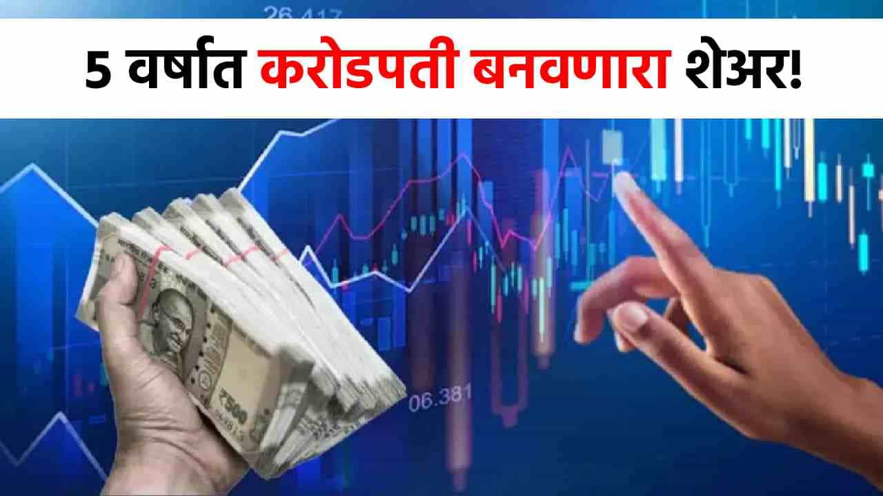 Share Market : शेअर बाजार हे असे क्षेत्र आहे जिथे गुंतवणूकदारावर एका क्षणात पैशांची बरसात होते. तर कधीकधी शेअर बाजारात माणूस कंगालही होतो. म्हणूनच या क्षेत्रात व्यवस्थित अभ्यास करून गुंतवणूक केल्यास पैसे बुडण्याचा धोका टाळता येतो. शोध घेतल्यास शेअर बाजारात काही समाभाग असे आहेत ज्यात गुंतवणूक केल्यास पैसे वाढण्याची हमखास शक्यता असते. सध्या अशाच एका शेअरची चर्चा होत आहे. या शेअरने आपल्या गुंतवणूकदारांना पाच वर्षांत करोडपती केले आहे.