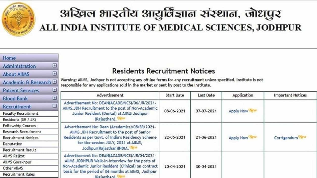 -या पदांसाठी अर्ज करण्यासाठी सर्वप्रथम एम्स जोधपूरच्या अधिकृत वेबसाइटवर जा iiimsjodhpur.edu.in.