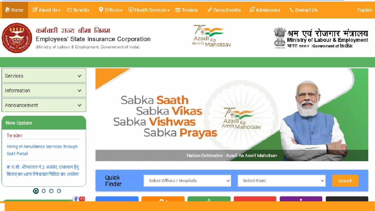 - सर्वप्रथम esic.gov.in या अधिकृत वेबसाइटवर जा.