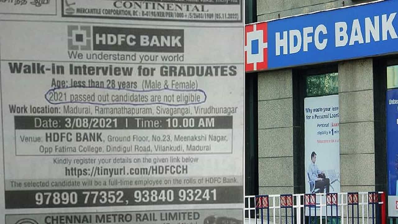 एचडीएफसी बँकेने या रिक्त पदासाठी जारी केलेल्या पहिल्या जाहिरातीमधील चूक सुधारली. दुसऱ्या जाहिरातीमध्ये विक्री अधिकारी पदासाठी 2021 मधील पास विद्यार्थ्यांना अर्ज करण्यास पात्र घोषित केले. तामिळनाडूच्या मदुराईमध्ये वॉक-इन मुलाखतीचं आयोजन करण्यात आलं होतं. त्यामध्ये 2021 चे पासआऊट विद्यार्थी देखील समाविष्ट होते.