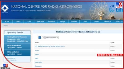 पुणे : नॅशनल सेंटर ऑफ रेडिओ ॲस्ट्रोफिजिक्स, पुणे (National Centre Of Radio Astrophysics,Pune) इथे एकूण 14 जागांसाठी भरती प्रक्रिया सुरु करण्यात आलीये. वेगवेगळ्या पदांसाठी ही भरती (Recruitment) असून, पदांनुसार शैक्षणिक पात्रता, वयाची अट आणि इतर अटी, नियम आहेत. अर्ज 3 मे 2022 ला सुरु झाले आहेत. अर्ज करण्याची शेवटची तारीख 31 मे 2022 आहे. इच्छुक उमेदवारांनी ऑफलाईन अर्ज (Offline Application) करायचा आहे. हा अर्ज खाली दिलेल्या पत्त्यावर महत्त्वाच्या कागदपत्रांसह पाठवायचा आहे. नोकरीचं ठिकाण पुणे आहे. अधिक माहितीसाठी अधिकृत संकेतस्थळाला भेट द्यावी. पात्र उमेदवारांनी लवकरात लवकर अर्ज करावा.