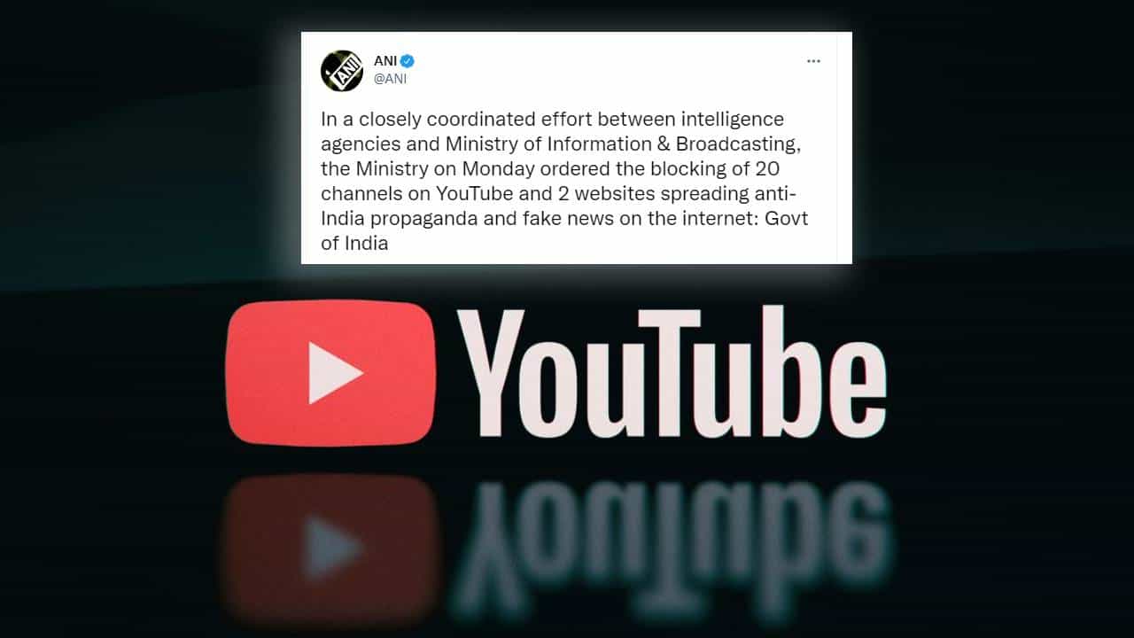 In a closely coordinated effort between intelligence agencies and Ministry of Information & Broadcasting, the Ministry on Monday ordered the blocking of 20 channels on YouTube and 2 websites spreading anti-India propaganda and fake news on the internet: Govt of India pic.twitter.com/B1vVR0QI03