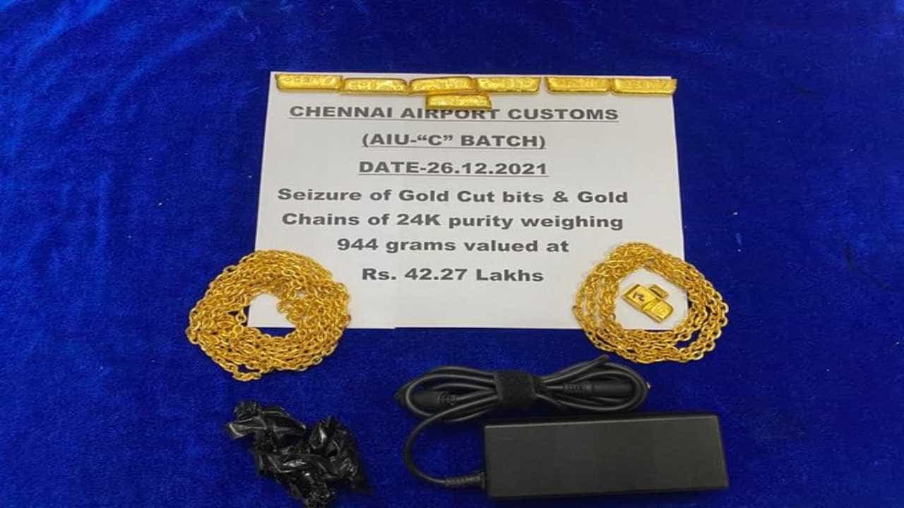 तामिळनाडूची राजधानी असलेल्या चेन्नईमधून एक धक्कादायक घटना समोर आली आहे. चेन्नई विमानतळावर तब्बल 42 लाख रुपयांचे सोने जप्त करण्यात आले आहे. हे सोनं 944 ग्रॅम इतके आहे.