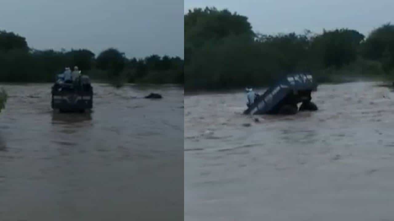 नांदगाव खंडेश्वर तालुक्यातील जावरा मोळवण येथून बेंबळा नदी वाहते. या नदीला पूर आला. ट्रॅक्टर चालकाला पुलावरून जाता येईल, असं वाटलं. त्यामुळं त्यानं पाच जण ट्रॅक्टरवर असले असताना ट्रॅकर पुलावरून काढला. पण, पुराच्या पाण्यामुळं त्याला पुलाचा अंदाज आला नाही. पुलाला कठडे नव्हते. त्यामुळं ट्रॅक्टरचा तोल नदीत गेला. ट्रॅक्टर बुडताना पाहून दोन जण कसेतरी बाहेर पडले. पण, तीन जणांचा अद्याप पत्ता लागला नाही. विशेष म्हणजे याचा व्हिडीओ कुणीतही बाहेरच्या व्यक्तीनं काढला. त्यामुळं पुरात ट्रॅक्टर बुडतानाचा व्हिडीओ घटनेनंतर व्हायरल झाला.