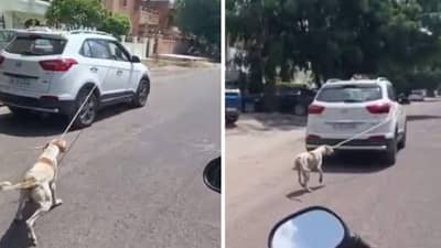 व्हिडिओमध्ये कुत्र्याला कारच्या दाराला बांधलेले दिसत आहे. कुत्र्याला गाडीच्या वेगाने धावता येत नसल्याने त्याची मान ओढली गेली. यानंतर रस्त्याने चाललेल्या नागरिकांनी कारला थांबवले आणि कुत्र्याची सुटका केली. कुत्र्याला दुखापत झाली आहे.