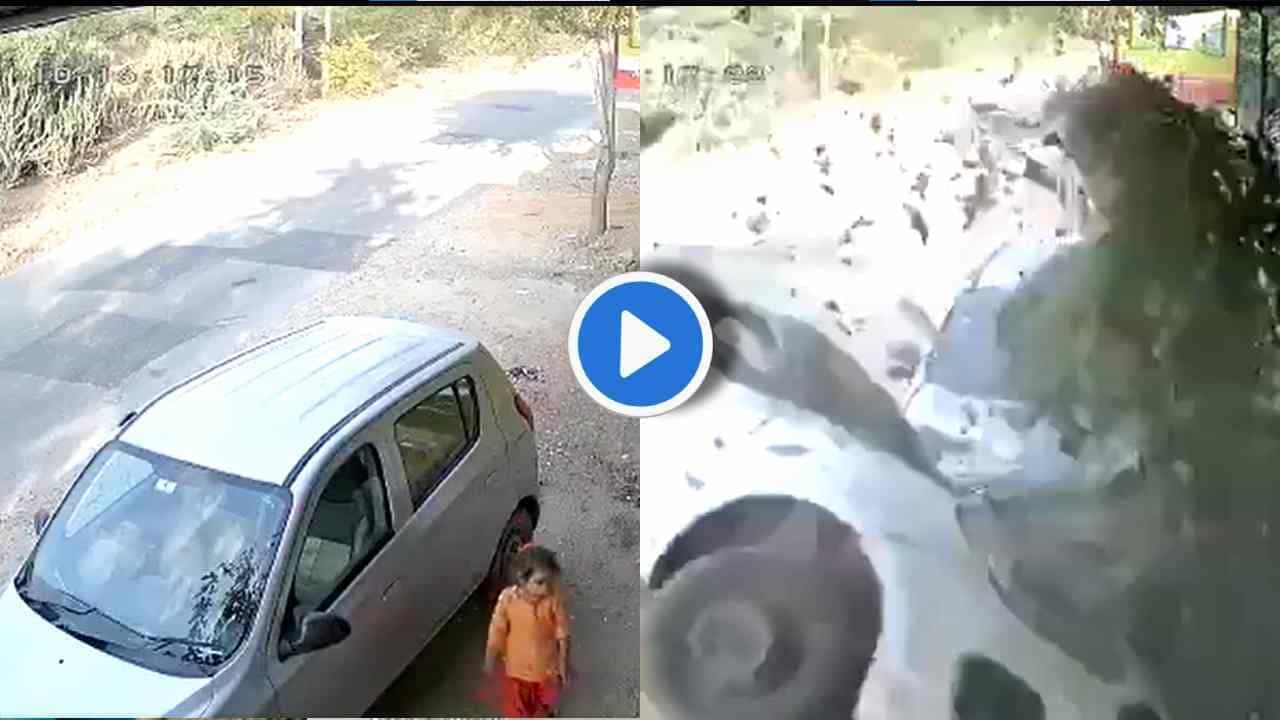 A four-year-old girl was playing in a car in Rajasthan. Just 7 seconds after he landed, a speeding vehicle hit the car. The CCTV video of the entire incident has come to the fore.