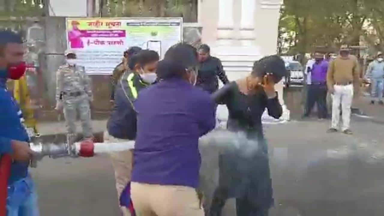 दरम्यान, पोलिसांनी वेळीच या महिलेला ताब्यात घेतलं. त्यानंतर या महिलेच्या अंगावर पाणी फवारण्यात आलं. भररस्त्यात घडलेल्या या थरारक प्रकारामुळे काही काळ गोंधळ निर्माण झाला होता.