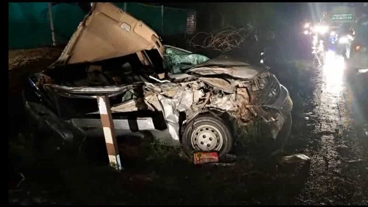 गणेश सोळंकी, बुलढाणा : बुलढाणा (Buldhana) शहरापासून काही अंतरावर येळगाव (Yelgaon) या गावजवळ असलेल्या टोल नाक्याच्या पुढे पैनगंगा नदीवरील पुलावर लक्झरी बस आणि कार यांच्यामध्ये समोरासमोर धडक होऊन भीषण अपघात झाला. ही घटना रात्री 9 ते 10 च्या दरम्यान झाली असून या अपघातात कारमधील एक जण घटनास्थळीच ठार झाला तर इतर तीन जण गंभीर जखमी झाले आहेत. पोलिसांनी (Bus car accident) घटनास्थळी पोहचून गाड्या बाजूला केल्याची माहिती मिळाली आहे. त्याबरोबर चुकी कोणाची आहे याचा पोलिस शोध घेत आहेत. ज्यावेळी अपघात झाला त्यावेळी इतका भयानक आवाज झाला की, लोकं घटनास्थळी दाखल झाली.
