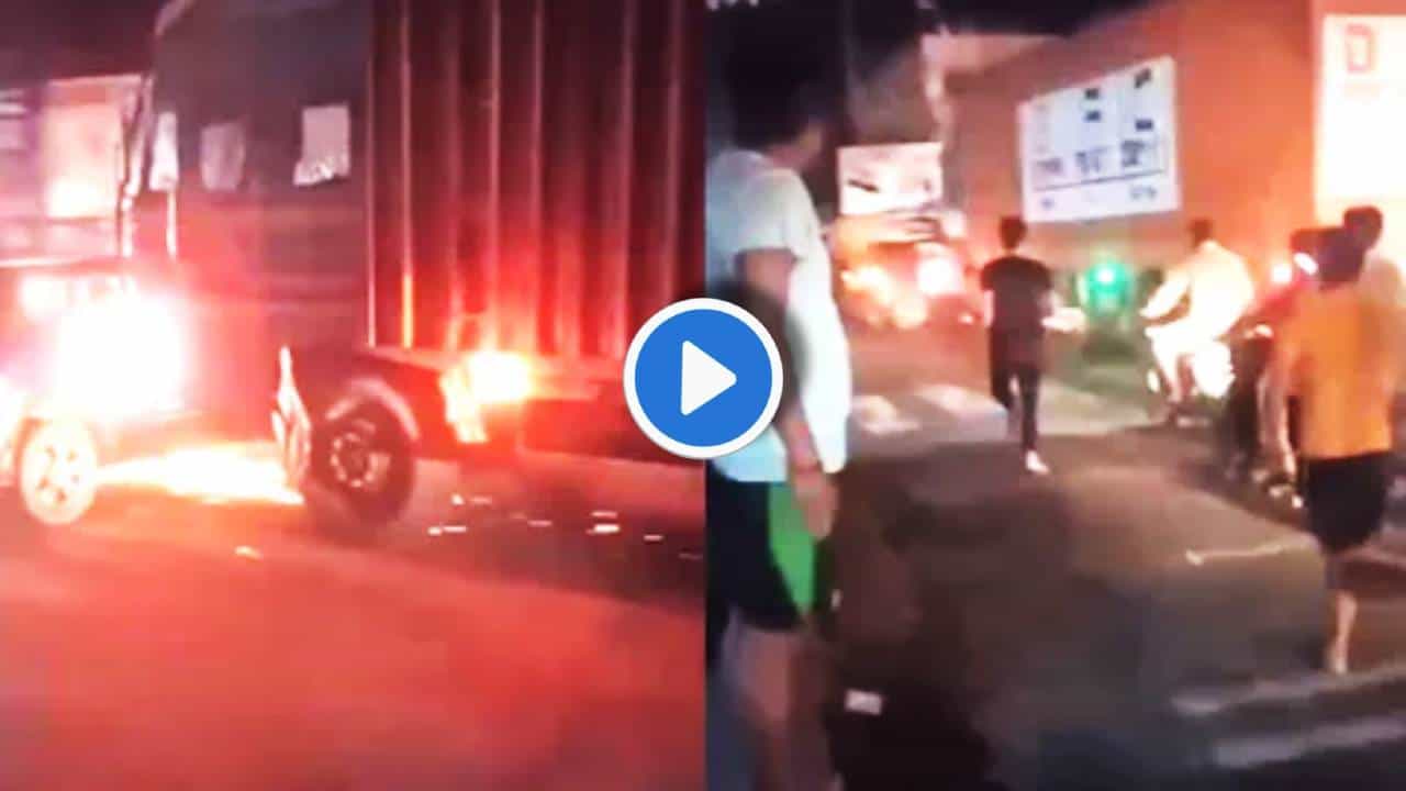 सिनेमात दाखवतात त्याप्रमाणे राजकीय नेत्याच्या (Political Leader Car Accident) कारला धडक देत कंटेनरचे अक्षरशः फरफटत नेलं. विशेष या भीषण अपघातामधून राजकीय व्यक्ती आश्चर्यकारकरीत्या बचावलीय. ही घटना घडली उत्तर प्रदेशमधूल मैनपुनरीमध्ये. समाजवादी पाटीचे जिल्हाध्यक्ष देवेंद्र सिंह (Devendra Singh Yadav) हे कारने घरी निघाले होते. वाटेत त्यांच्या कारला एका भरधाव ट्रकने ठोकर दिली आणि अक्षरशः कारला फरफटत रस्त्यावरुन 500 मीटर दूरवर ट्रक खेचत घेऊन गेला. थरारक अपघातात दोघे बाईकस्वारही गाडी खाली येता येता राहिले. ही धक्कादायक घटना कॅमेऱ्यातही (Up Accident Video) कैद झाली आहे. या घटनेच्या व्हिडीओमध्ये हा अपघात किती भीषण होता, हे ठळकपणे अधोरेखित झालंय. दरम्यान, पोलिसांनी या अपघातप्रकरणी ट्रक चालकाला ताब्यात घेतलंय. तसंच सपा जिल्हा अध्यक्ष देवेंद्र सिंह यादव यांनी पोलिसांत तक्रारही दाखल केली. स्थानिक लोकांनी वेळीच प्रसंगावनधान राखत मोठा अपघात होता होता रोखलाय.