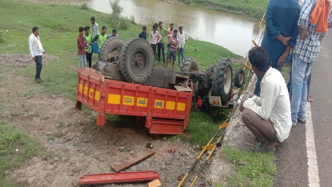 पिंजर्डा नदीच्या पुलावरून ट्रॅक्टर ट्राॅलीसहीत नदीत पडले