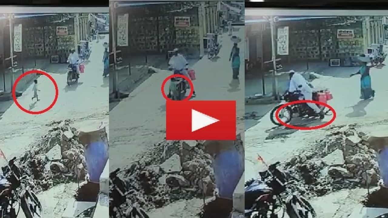 बीडमधील चिमुकला रस्त्याने जाणाऱ्या दुचाकीच्या अचानक समोर गेला. त्याला बाईकची जोरदार धडक बसली आणि तो जवळपास बाईकखाली आला. (Beed Boy Bike Saved )
