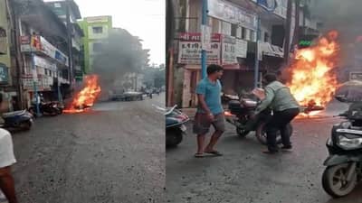 डोंबिवली : डोंबिवली पूर्वेतील मंजुनाथ शाळेजवळ भररस्त्यात एका मोटरबाईक (Bike)ला भीषण आग (Fire) लागल्याची घटना घडली. आगीमुळे परिसरातील नागरिकांची पळापळ झाली. या घटनेमुळे रस्त्यावरील वाहतूक (Traffic) काही काळ ठप्प झाली होती. घटनेची माहिती मिळताच केडीएमसीचं अग्निशमन दल घटनास्थळी दाखल झालं. अग्निशमन दलाने त्वरित आग विझवली. आगीचे कारण अद्याप अस्पष्ट आहे. या आगीत दुचाकी संपूर्ण जळून खाक झाली आहे. मंगेश वेलणकर यांच्या धाब्यावरील व्यक्तीची ही बाईक होती. पेट्रोल भरु जात असताना मध्येच गाडीला अचानक आग लागली आणि बुलेट जळून खाक झाली.