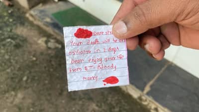 रत्नागिरीच्या खेडमध्ये एका प्रसिद्ध शॉपिंग मॉलमधील दुकानदारांमध्ये भीती निर्माण व्हावी असा प्रकार समोर आला आहे. कारण रात्रीच्या वेळी कुणीतरी दुकानांच्या समोर जीवे मारण्याची धमकी देणाऱ्या चिठ्ठ्या ठेवल्या आहेत. या चिठ्ठीत लाल रंगाच्या शाईने मजकूर लिहिण्यात आला आहे. या मजकूरमध्ये तारीख देवून या दिवशी तुमचा मृत्यू होईल, असं सांगण्यात आलं आहे. संबंधित प्रकार समोर आल्यानंतर एकच खळबळ उडाली आहे. धमकी देणारा आपलं स्वत:चं नाव ब्लडी मॅरी असं असल्याचं म्हणाला आहे. त्याच्या या धमकीने दुकानदारांची झोप उडाली आहे. संबंधित प्रकार नेमका कुणी केला? त्याचा खरंच काही घातपात घडवण्याचा डाव आहे की थिल्लरपणा आहे? असे प्रश्न या निमित्ताने उपस्थित होत आहेत. या प्रकरणी आता पोलीस काय कारवाई करतात? याकडे सर्वाचं लक्ष असणार आहे.