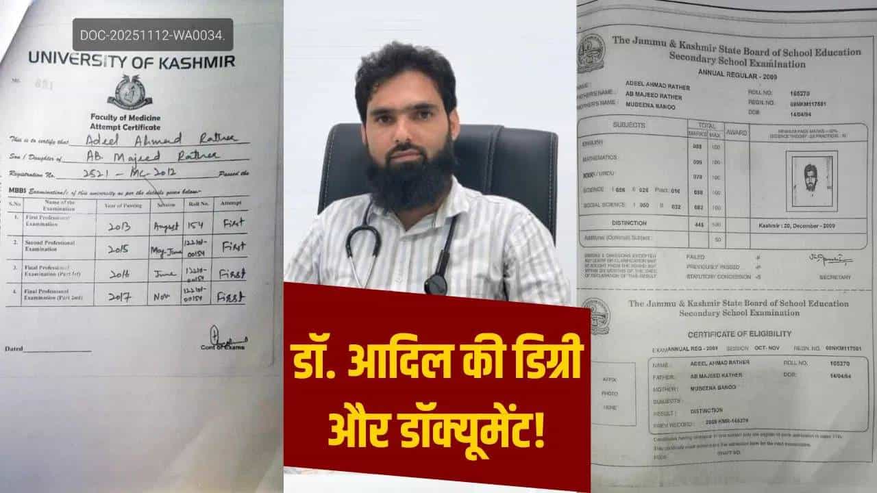 अभ्यासात हुशार असलेल्या दहशतवादी डॉ.आदिल अहमद राठरला सेकेंडरी क्लासमध्ये गणिताच्या विषयात 100 पैकी 99 गुण, विज्ञानात 100 पैकी 98 गुण आहेत. इतकच नाही, त्याने अव्वल दर्जाने MBBS आणि मेडिसिन MD ची डिग्री घेतली. 2022 साली अनंतनागच्या सरकारी मेडिकल कॉलेजमध्ये सीनियर रेजिडेंट डॉक्टर होता. आदिल इथूनन सहारनपुरला गेला.