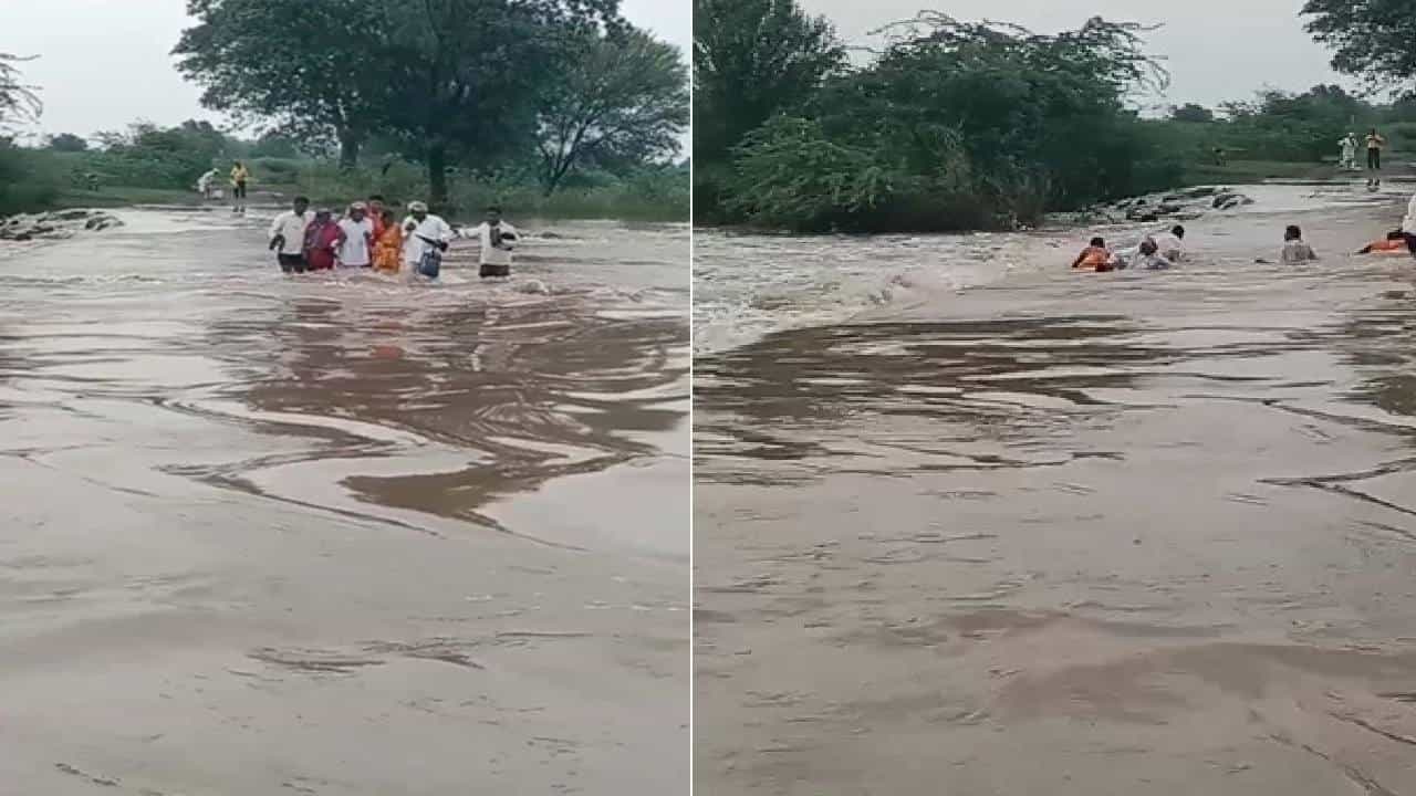 पूल ओलांडताना पुराच्या पाण्यात वाहून गेले, थरारक घटना मोबाईल कॅमेऱ्यात कैद