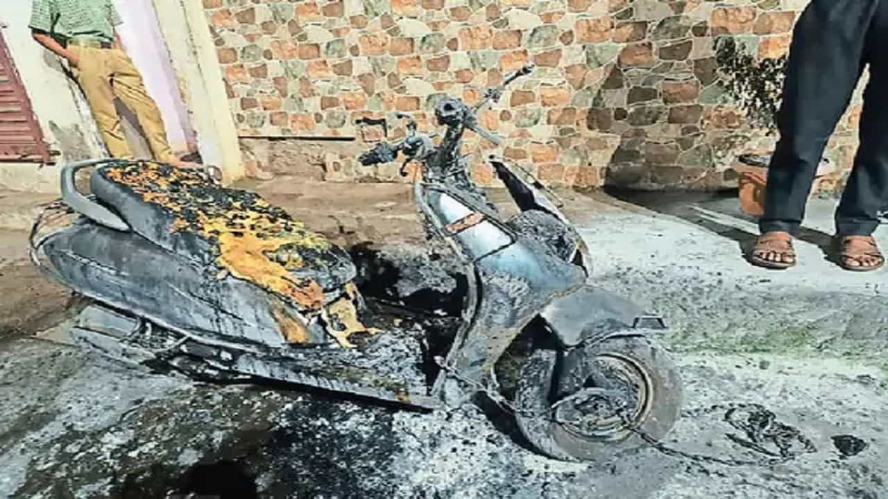 घराच्या बाहेर मोठा आवाज झाल्याने नागरिक बाहेर जमा झाले होते. नागरिकांनी आग विझवण्याचा प्रयत्न केला मात्र तोपर्यंत दुचाकी जाळून खाक झाली होती.