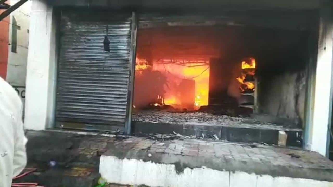 आगीत दुमजली दुकान जळून खाक