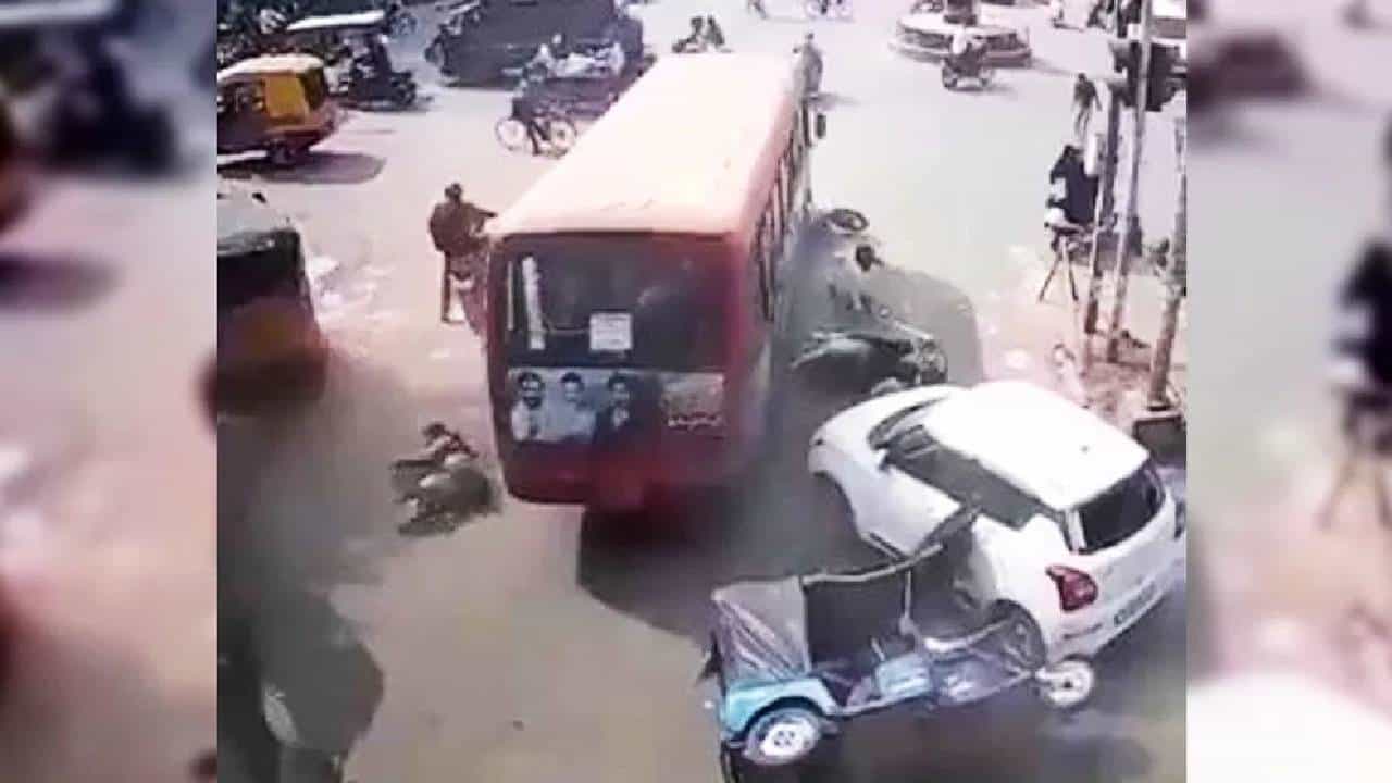 ही घटना सीसीटीव्हीमध्ये कैद झाली असून सिग्नलवर थांबलेल्या वाहनांना चिरडत बस पुढे जात असल्याचे दिसत आहेत. यामध्ये वाहनधारकही चिरडल्याचे दिसून येत आहे.