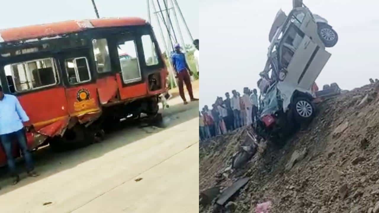 एसटी बस ही उदगीरहून चाकूरकडे निघालेली होती. धक्कादायक बाब म्हणजे या अपघातानंतर कारमधील भाविकांचे मृतदेह बाहेर काढण्यासाठी चक्क गाडीता पत्रा कापावा लागला. गॅस कटरच्या साहाय्याने गाडीचा पत्रा कापून मृतदेह बाहेर काढण्यात आले. कार चालकाने नियंत्रण सुटल्याने हा अपघात घडला. पाच तरुणांच्या मृत्यूने उदगीर शहरावर शोककळा पसरली आहे. तसंच मृतांच्या कुटुंबीयांवरही मोठा आघात झालाय.