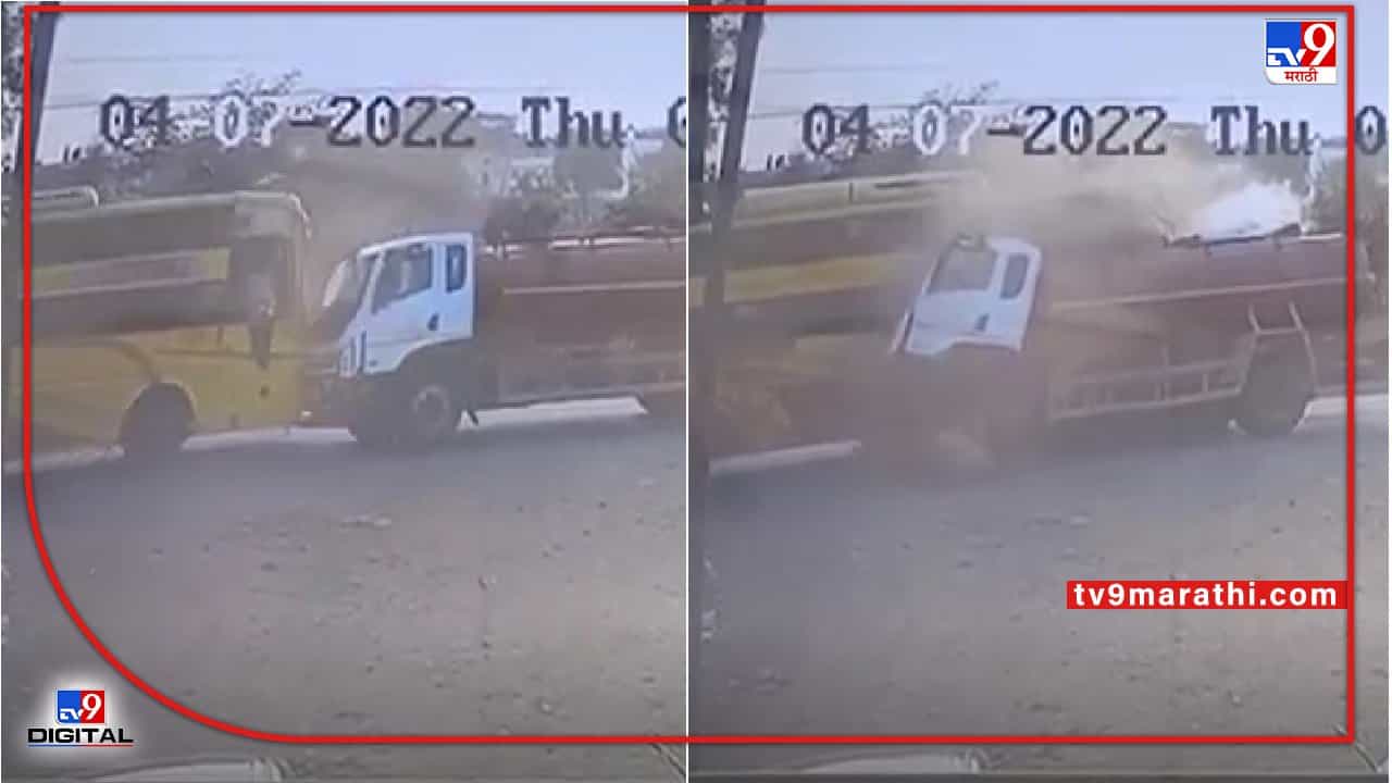 Accident CCTV | बघता-बघता टँकर थेट बसमध्ये घुसला, पुणे-यवतमाळ ट्रॅव्हल्सच्या अपघाताची भयंकर सीसीटीव्ही दृश्यं
