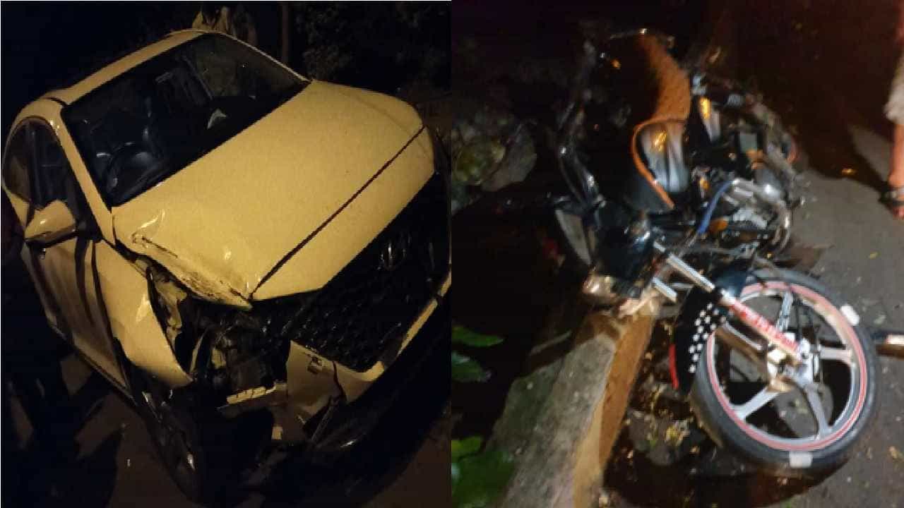 कार आणि बाईकचा चुराडा