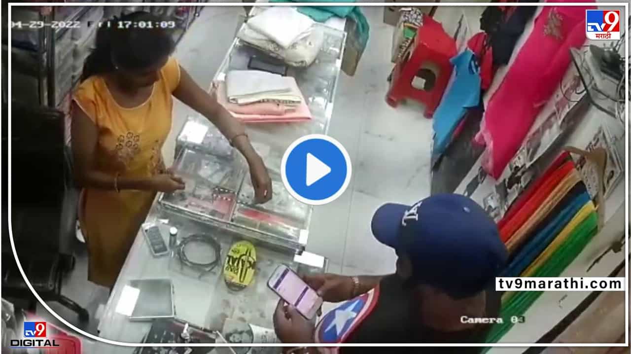 बदलापूर : दुचाकीवरुन येऊन सोनसाखळी चोरी (Chain snatching) करण्याच्या घटना चिंता वाढवणाऱ्या आहेतच. त्यासाठी काळजी आणि सतर्कता बाळगण्याचीही गरज आहेच. पण त्याही पेक्षा जास्त सतर्कता बाळगण्याची गरज आहे, ती बोलण्याच्या नादात गुंतवून गंडवणाऱ्यांना सावध राहण्याची. गोड गोड बोलून आपल्या जाळ्यात एका महिलेला अडकवून तिचं मंगळसूत्र लांबवण्याची घटना उघडकीस आहे. या संपूर्ण घटनेचं सीसीटीव्ही देखील समोर आलंय. एका महिलेनं स्वतः चोराला मंगळसूत्र (Mangal sutra) गळ्यातून काढून दिलं. त्यानंतर हा चोर मंगळसूत्र घेऊन पसार झाला. एका कपड्यांच्या दुकानात ग्राहक बनून आलेल्या भामट्यानं ही चोरी केली. ज्वेलर्स व्यापारी असल्याचं सांगत या भामट्या ग्राहकानं महिलेला गंडा घातला. कपड्याच्या दुकानात असलेल्या सीसीटीव्ही कॅमेऱ्यात (Theft CCTV Video) हा सगळा प्रकार कैद झाला आहे. बदलापूर पश्चिमेच्या बेलवली परिसरात दुर्गा कलेक्शन नावाचं महिलांच्या कपड्यांचं दुकान आहे. या दुकानात इंदू उतेकर या महिला काम करतात. शुक्रवारी संध्याकाळी त्या दुकानात असताना एका व्यक्तीने दुकानात येत ड्रेस दाखवण्यास सांगितलं. ड्रेस खरेदी करुन झाल्यानंतर या भामट्यानं महिलेच्या मंगळसूत्राची तारीफ केली आणि त्यानंतर हे मंगळसूत्र लांबवलंय. 29 एप्रिल रोजी चोरीची ही घटना घडली होती.