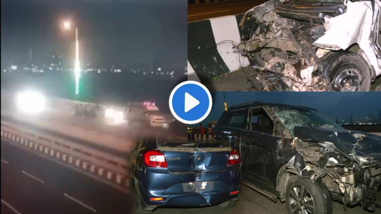मुंबई : वांद्रे वरळी सी लिंकवर बुधवारी पहाटे भीषण अपघात (Bandra worli Sea Link Accident CCTV Video) झाला. सुरुवातीला 2 वाहनांचा अपघात झाला होता. या अपघातामधील जखमींना रुग्णवाहिकेत (Ambulence) शिफ्ट केलं जात होतं. त्याच वेळी एका भरधाव कार सी लिंकवर उभ्या असलेल्या वाहनांच्या रांगेत घुसली. ही जबर इतकी धडक (Mumbai Accident CCTV) होती की कार एका जागेवरुन उडून पुढपर्यंत फेकली गेली. या भीषण अपघातामध्ये 5 जणांचा मृत्यू झाला आहे. पहाटे 3 वाजण्याच्या सुमारास हा अपघात घडला. या अपघाताची थरकाप उडवणारी दृष्य सीसीटीव्ही कॅमेऱ्यात कैद झाली आहेत.