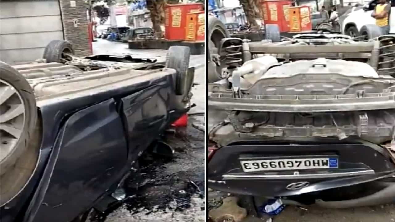 कार पार्क करताना तरुणीचा अंदाज चुकला, दुसऱ्या मजल्यावरुन पडून गाडी पलटी, खाली उभी कार तर सपाटच