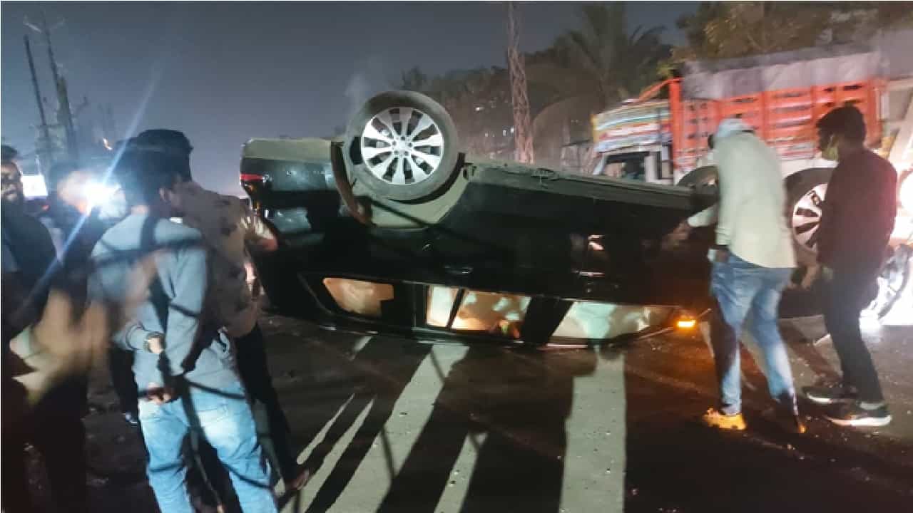 मधोमध उभ्या असलेल्या व्हॅगन आर आणि टेम्पोला पाहून चालकाने गाडी बाजूने काढण्याचा विचार केला. मात्र गाडी वेगात होती. हीच गाडी रस्त्याच्या बाजूला असलेल्या मातीच्या ढिगाऱ्यावर चढून पलटी झाली. या अपघातात एकाला किरकोळ मार लागला आहे