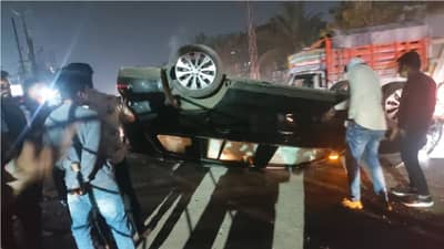दोन्ही वाहन चालक पोलिस ठाण्यात तक्रार करण्यासाठी गेले असता शीळ फाट्याहून एक मर्सिडीज कार आली. त्यात शिवसेनेचे माजी नगरसेवक मल्लेश शेट्टी यांचा मुलगा हरमेश शेट्टी आणि त्यांचा चालक होता. मधोमध उभ्या असलेल्या व्हॅगन आर आणि टेम्पोला पाहून गाडी बाजूने काढण्याचा विचार केला. मात्र गाडी वेगात होती. हीच गाडी रस्त्याच्या बाजूला असलेल्या मातीच्या ढिगाऱ्यावर चढून पलटी झाली. या अपघातात एकाला किरकोळ मार लागला आहे, अशी माहिती मानपाडा पोलिस ठाण्याचे अधिकारी प्रदीप गायकवाड यांनी दिली आहे.