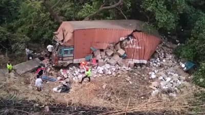 एक कंटेनर आणि आणखी ट्रकच्या चालकाची कॅबिनदेखील दरीत कोसळली आहे. या अपघातात ट्रक आणि कंटेनरमधील सामानाचं मोठं नुकसान झालं आहे. अपघातग्रस्त कंटेनरमध्ये कांदे आणि घरगुती भांड्यांचं सामान होतं. या सामानाही अपघातात फटका बसलाय.