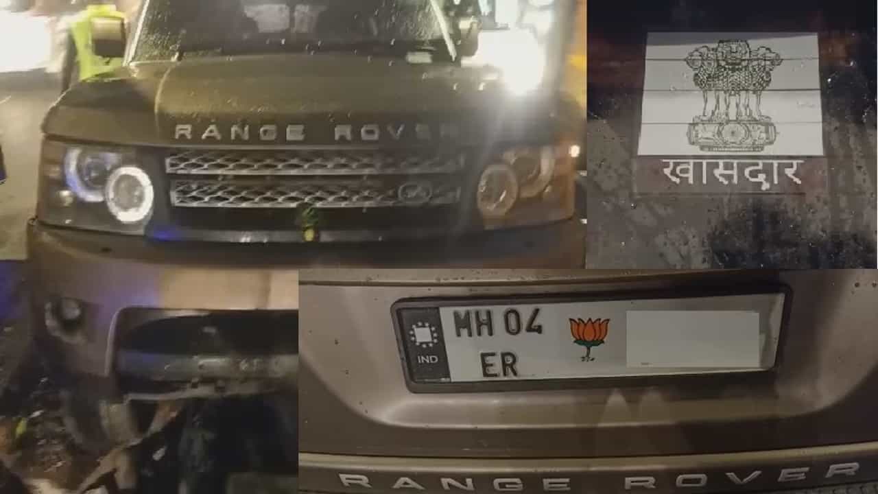 (Mumbai Range Rover Car Accident at Goregaon Western Express Highway has BJP MP Logo)