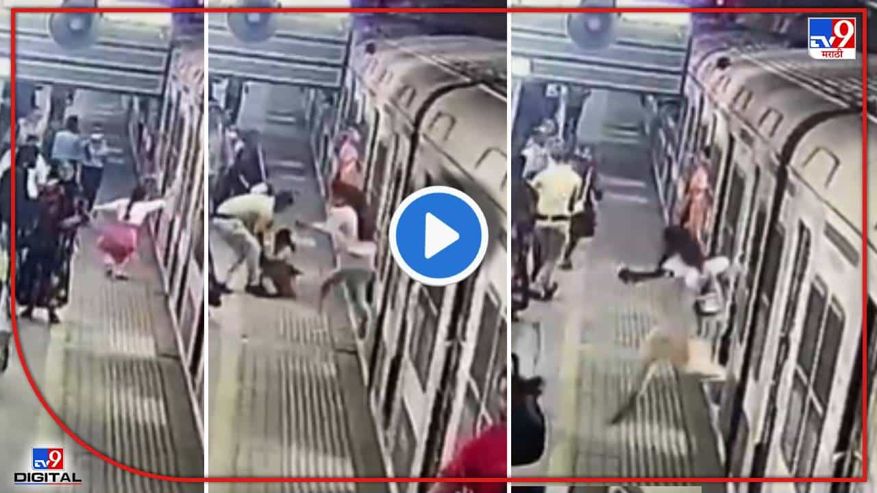Mumbai Local CCTV Video : तिघा मैत्रिणींमधील एक मुलगी गाडीतून उडी टाकते.