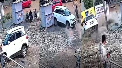 संबंधित चालक पार्क केलेली पांढऱ्या रंगाची कार बाहेर काढत होता. त्याने गाडी रिव्हर्समध्ये घेतली. यावेळी ब्रेकवर पाय ठेवण्याऐवजी ड्रायव्हरने अॅक्सिलरेटरवर पाय ठेवला. त्यामुळे पार्किंगमध्ये असलेली गाडी रिव्हर्समध्ये जोरदार वेगाने आली.