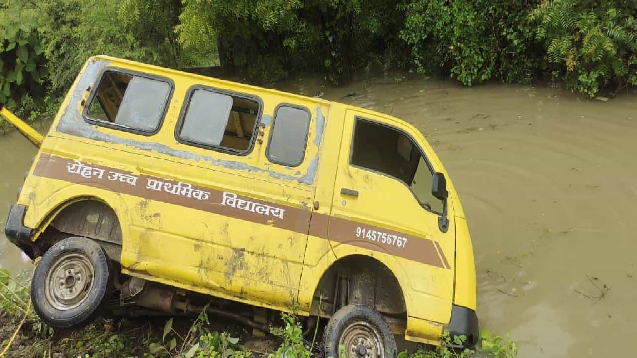Nagpur School Van Accident : नागपूरच्या बेसा परिसरातील नाल्यावर व्हॅनचा हा अपघात झाला आणि व्हॅन नाल्या्चया किनाऱ्यावर घुसली.