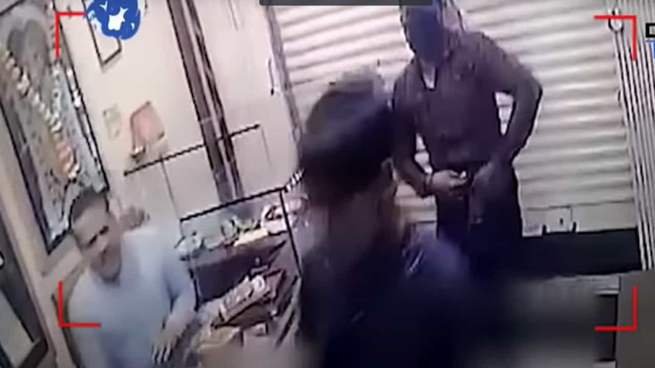 VIDEO : बाईकवर तिघं आले, दोघांच्या हातात बंदूक, ज्वेलर्समध्ये शिरताच मोठा गदारोळ, सीसीटीव्हीत थरार कैद
